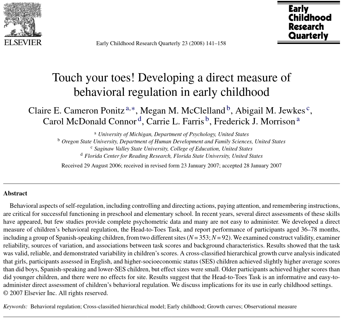 Οι ερευνητές έπρεπε να αποδείξουν ότι η δοκιμασία αξιολογεί αυτορρύθμιση και όχι τη γνώση των μερών του σώματος.